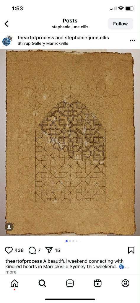 I had the joy of attending one of Stephanie’s Art of Process workshops just this weekend past. Slowing down to explore the patterns of nature, of sacred geometry, of ancient wonders. Stephanie’s artwork is breathtaking…